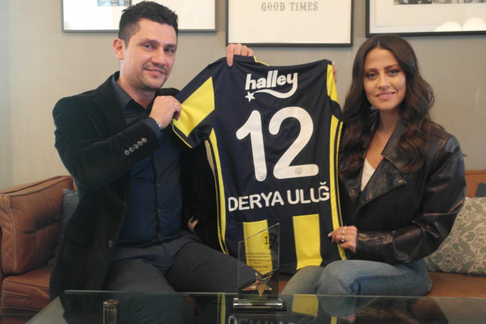 “Yılın En Beğenilen Fenerbahçeli Kadın Sanatçısı” kategorisinde birinci olan başarılı ve genç sanatçımız Sayın Derya Uluğ ödülünü İmtiyaz Sahibimiz Sayın Talha Yazgan’ın elinden aldı. Kendisine yılın anısına verilen birincilik plaketinin yanı sıra birde çubuklu formamız hediye edildi.