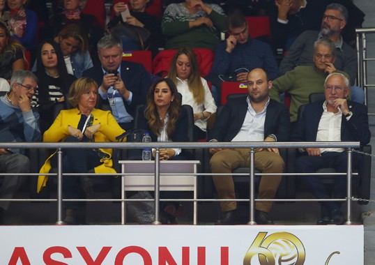 Burhan Felek Voleybol Salonu’nda oynanan müsabakayı Voleybol Şubemizden Sorumlu Yönetim Kurulu Üyelerimiz Simla Türker Bayazıt ve Muhittin İlker Dinçay ile Erkek Basketbol Takımımızın kaptanı Melih Mahmutoğlu izledi.